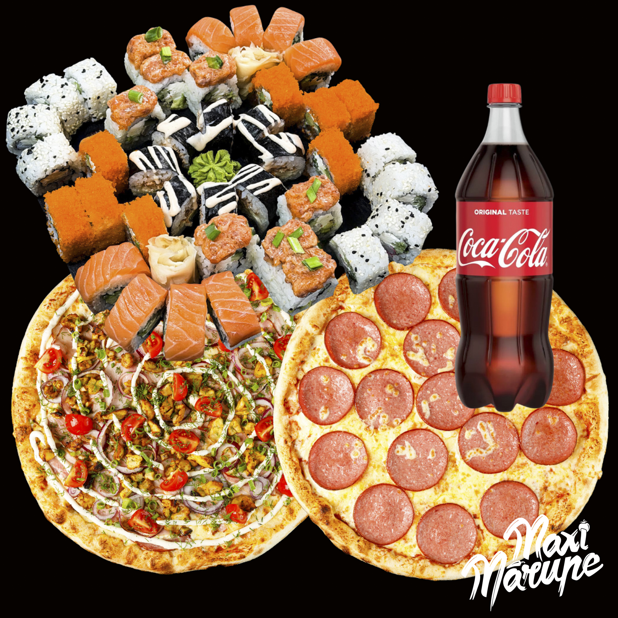 Īpašs ģimenes picu un suši komplekts par labāku cenu – 2 atlasītas 40cm picas, Pavasara suši sets un dzēriens!